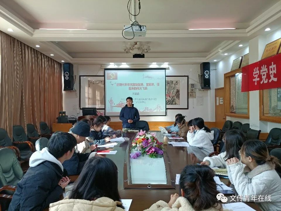 本网讯(通讯员 罗骞 王智鹏)12月2日,mk体育官网第二学生党支部在砂子坳校区第一教学楼影视鉴赏室开展“近现代中华民族站起来、富起来、强起来的伟大飞跃”主题党课。本次会议由mk体育官网本科生第二党支部书记刘建新主讲,本科生第二党支部全体党员参与会议。