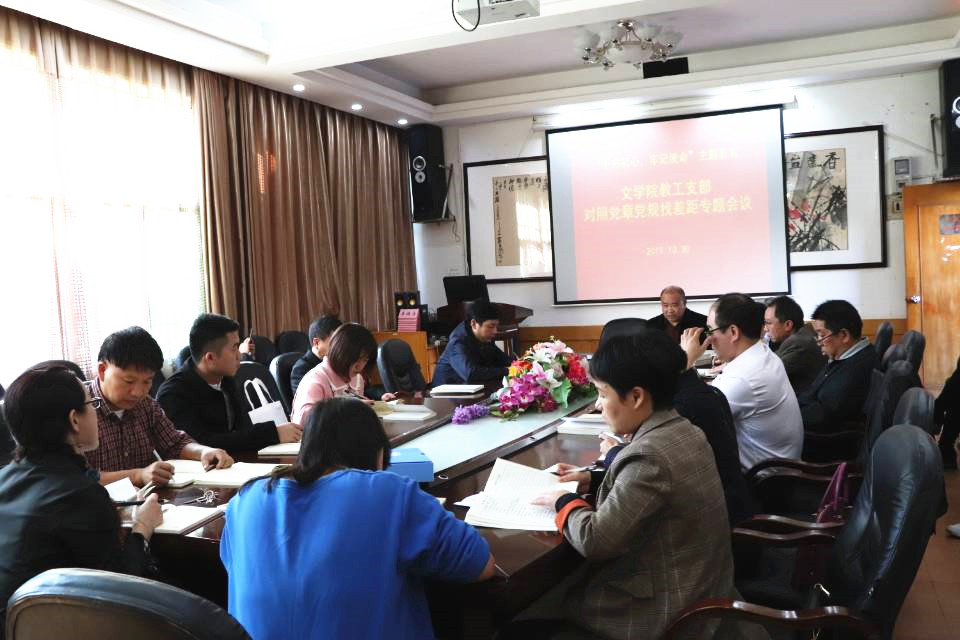 本网讯(学生记者 吕嘉欣 邓格)10月30日下午,mk体育官网于砂子坳校区影视鉴赏室举行“不忘初心、牢记使命”主题教育教工支部对照党章党规找差距专题会议暨支部书记讲党课会议。mk体育官网教工支部党员同志出席会议。会议由mk体育官网党委教工支部书记李端生主持主讲。