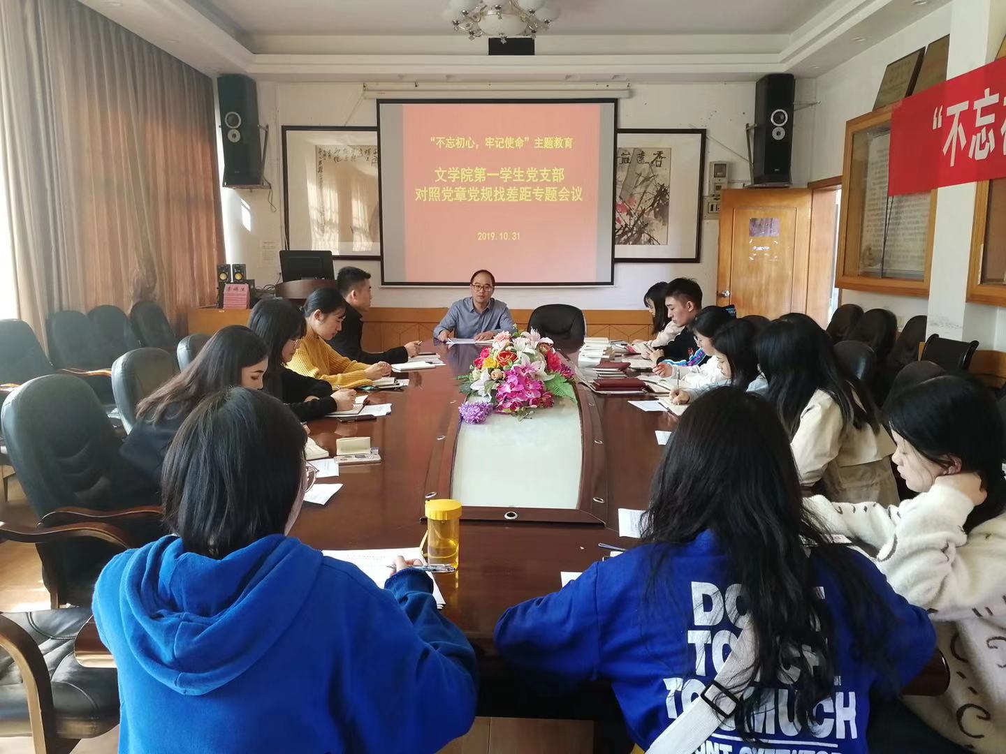本网讯(通讯员 石新月)10月31日中午,mk体育官网第一学生党支部开展“不忘初心、牢记使命”主题教育对照党章党规找差距专题会议。mk体育官网副院长彭广林出席会议,教职工党员及第一学生党支部全部党员参会。会议由第一学生党支部书记刘建新主持。