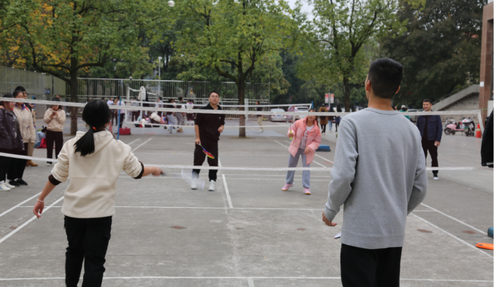 本次羽毛球比赛分为单打和双打两个项目,采取分组淘汰制进行比赛。下午4点,研究生党支部参赛党员与中师二班全体同学在羽毛球场集合并进行简单的热身之后,比赛正式开始。