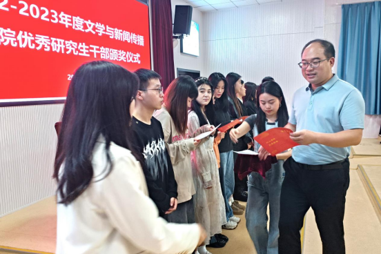 随后,会议进行第二个环节:2022-2023年度院研究生干部颁奖仪式。鲁怡冰宣布获奖名单,彭广林、瞿建慧为同学们颁奖。优秀学生干部袁玲娜围绕“我该做一个什么样的共产党员”这一核心问题论述其心路历程的发展,强调作为一名共产党员必须积极响应党团活动、积极学习理论知识、积极投入到实际中。