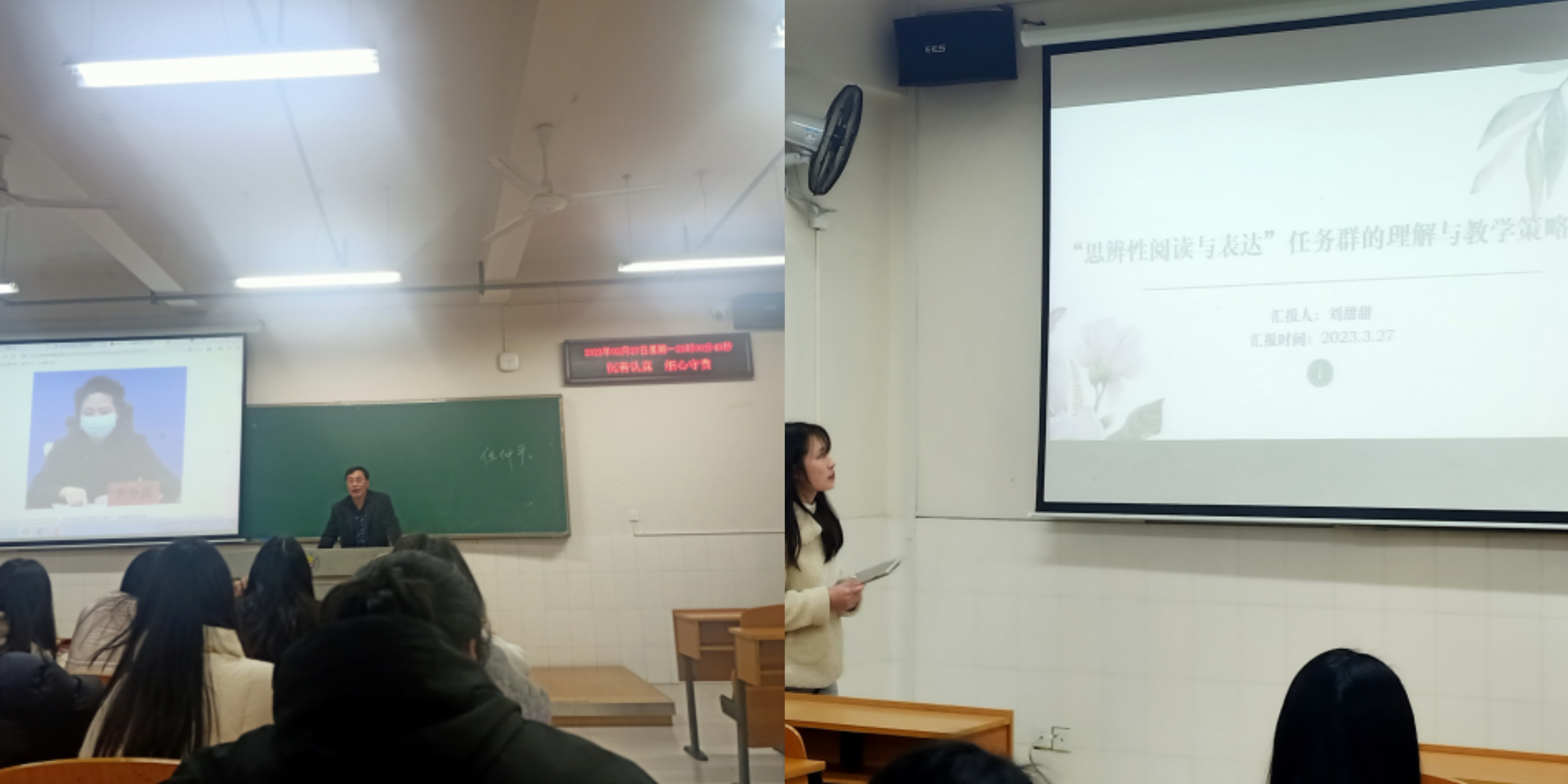 学科语文专业刘甜甜分享的是“‘思辨性任务与表达’任务群的理解与教学策略探讨”这一课题,她从研究缘起、研究现状、教学案例分析、教学实施策略四个方面入手做专题汇报。