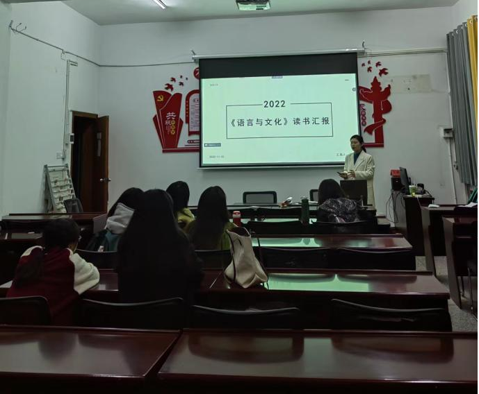 文字学专业江妙分享的书籍是《语言与文化》,她围绕作者简介、土家族文化以及个人思考展开叙述。其中,最引人思考的是江妙对一些土家族词汇的分享和解释:如“毕滋卡”,它的意义与土家族的文化密切相关,土家族最初是一个母系族群,女性可以与多位与男性结为连理,因此这个词汇的意义是指,男性出嫁时的哭嫁的习俗;再如“舍把”(“社巴”),它的意义指的是,人们祭祀时所跳的一种舞蹈,因此结合古典文献的记载,这个词汇的意思是,祭奠已故的地方官员......江妙同学通过对这些土家族词汇的分享,让同学们深刻认识到了语言与文化的紧密联系。她对土家族词汇的解释,以及在书籍中遇到问题时展开的拓展思考,都是自己细心查阅相关论文资料得出的结果。此外,她还提到,同学们在读书时应该有自己研究思路,首先应该从宏观到微观看待问题;面对方言研究,要重视方言研究的重要性;身为自己方言地区的一份子,要增强文化认同和文化自信;读书时要站在一定的理论和方法论基础上来学习。最后,硕士生导师邹晓玲评价道,江妙同学读书的态度非常严谨仔细,在询问关心同学们的读书情况后,向同学推荐了相关的书籍。