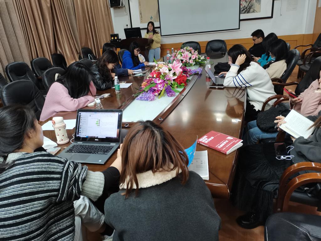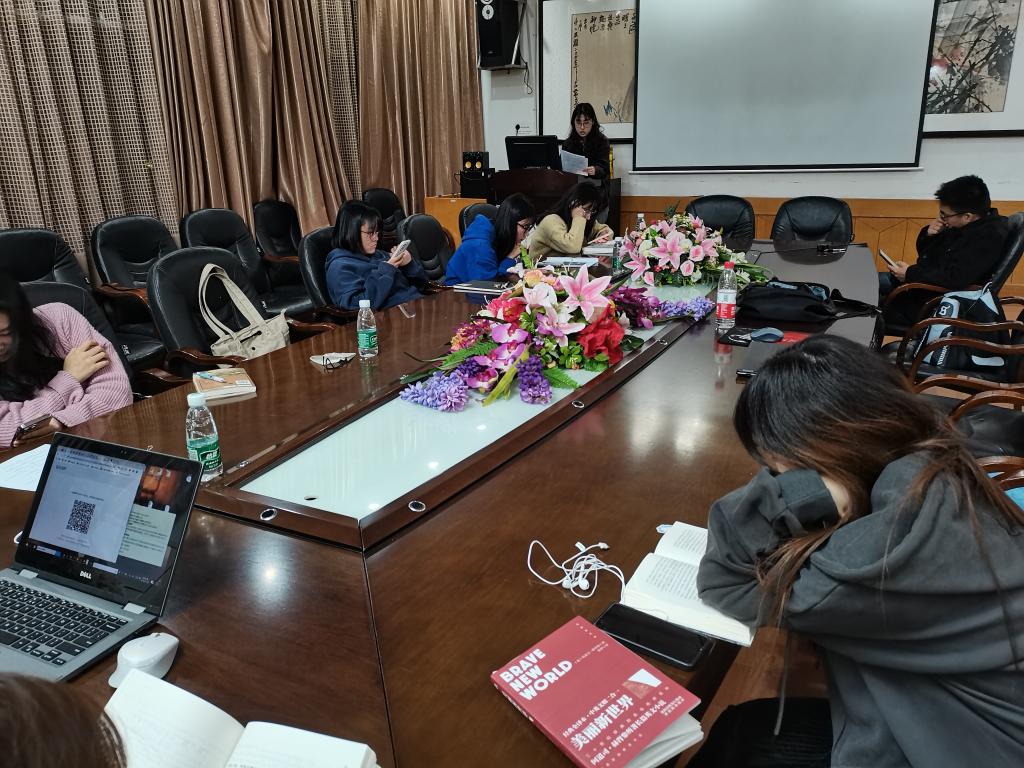 文学专业周敏分享的书目是《玉台新咏》,她从作者介绍和创作背景、本书内容、文本解读三个方面入手,分析了南朝宫体诗绮艳的风格,谈了对《玉台新咏》的评价。她指出对这本书应该采取客观的评价,比如《玉台新咏》女性群体的创作,体现了女性意识的觉醒,后来谈到了和女性相关的一种诗歌类型即“怨妇诗”,最后谈了自己对于这本书的理解。赵萌分享的是《明清章回小说流派研究》这本书,从四大章回小说流派的分化演变、关于明清章回小说流派划分的思考两方面进行阐述。她向大家介绍了历史演义的两种主要类型,英雄传奇的三种主要类型,神魔小说的四种主要风格类型,人情小说的三种基本类型。李竹影分享的是梁启超的《清代学术概论》,她从作者与背景,内容梳理和心得体会三个方面入手,提出了一个问题:“清代思潮”为何物?清代思潮经历了启蒙期、全盛期、蜕分期及衰落期。最后她提出了自己的心得体会:对于知识应抱有敬畏之情。学问之价值,在善疑,在求真,在创获。李慧分享的书目是闻一多的《唐诗杂论》,她从《唐诗杂论》与诗思融合以及闻一多的诗情分析,谈到了闻一多诗个体生命的融入,格律修辞的诗美以及诗人气质的想象。此外,她谈到了《唐诗杂论》的哲理性。随后,硕士生导师给予了评价和指导,首先表扬了四位同学准备的认真详细,研读书目认真,接着给大家提出意见,希望大家能从前人的研究中发现属于自己的观点,把前人的成就加工成属于自己的东西。