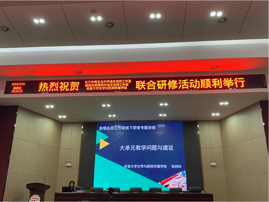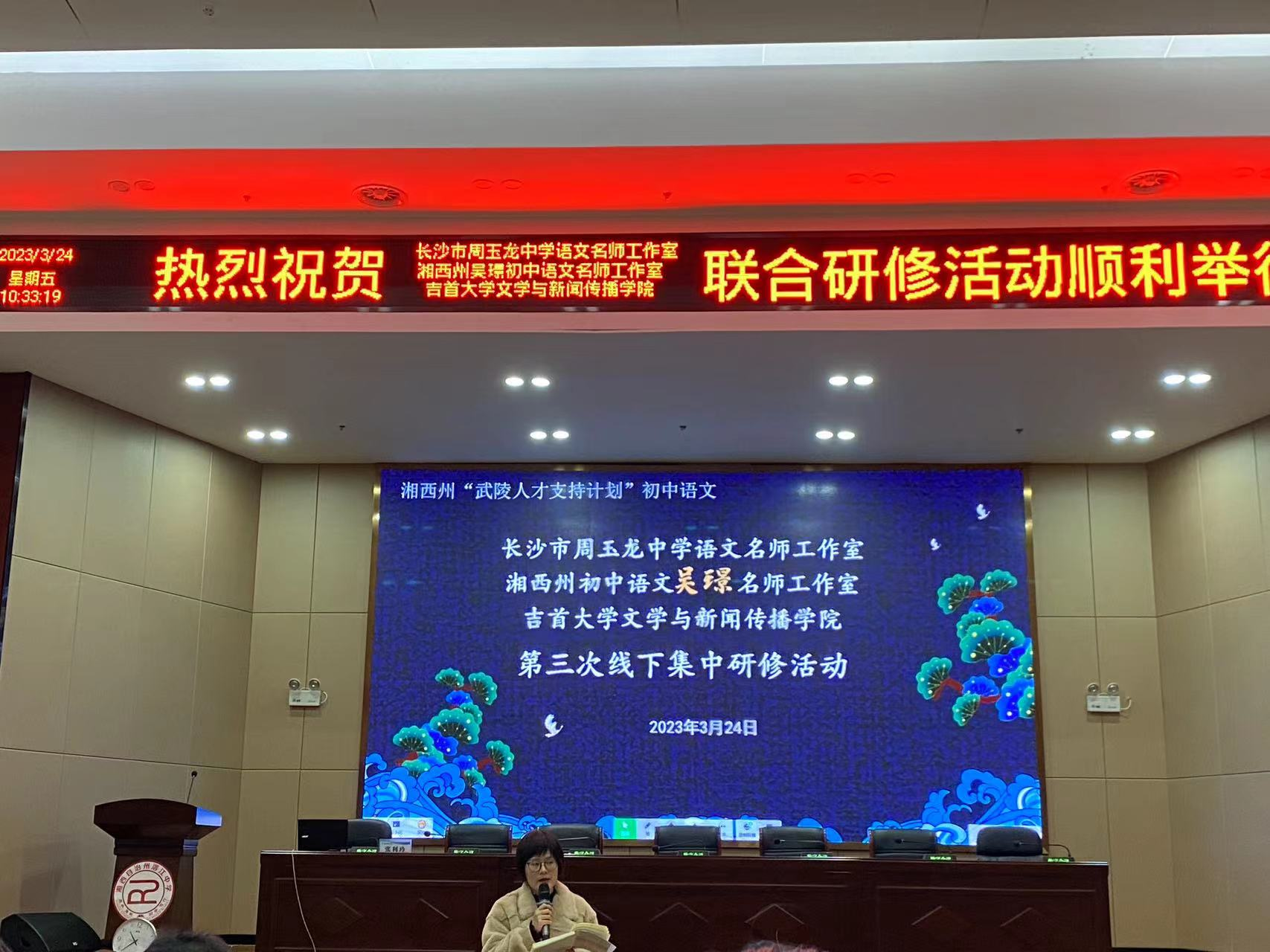 此次研修活动规模空前,是湘西土家族苗族自治州“武陵人才支持计划”初中语文吴璟名师工作室、长沙市周玉龙中学语文名师工作室、MK体育,MKsports,mk体育官网联合举办的一次大型教学研修活动,主题是大单元教学研讨。