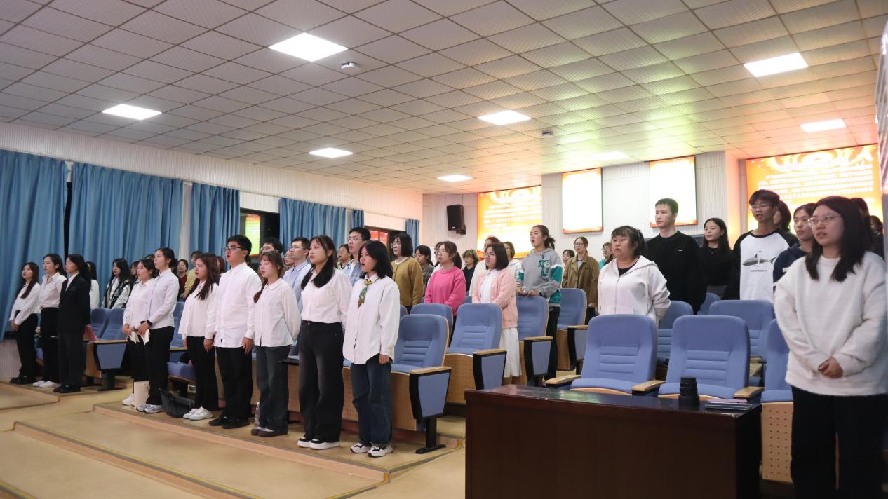 会议在庄严的国歌声中拉开帷幕,全体参会成员起立,奏唱国歌。随着国歌响起,2024年度院研究生会全体大会正式开始。