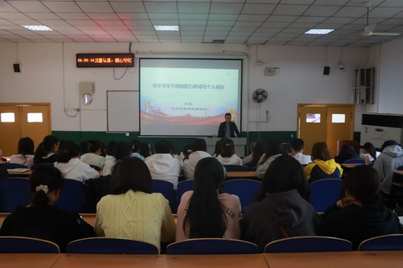 本网讯(通讯员 陈可欣 张雨童 潘洛冰 龙舟)为进一步提升学生干部的综合素质和工作能力,11月3日下午,学院于砂子坳校区第一教学楼1107教室举办学生干部能力提升培训。本次培训特邀学院党委副书记彭俊、mk体育官网人事处综合办公室科员杜礼瑾担任主讲嘉宾,学院第二十三届团委学生会全体干部参训。