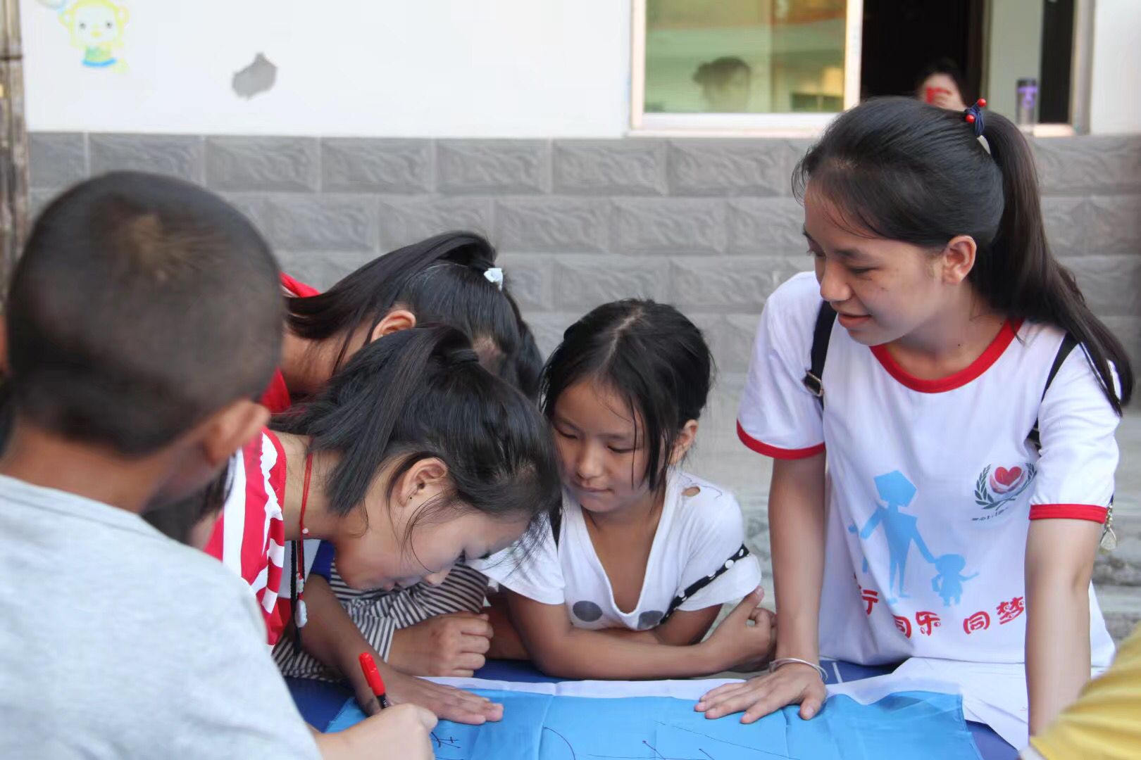 “在文学院下乡活动中我认识了一群可爱的小孩子,他们需要我们的帮助和关心。”