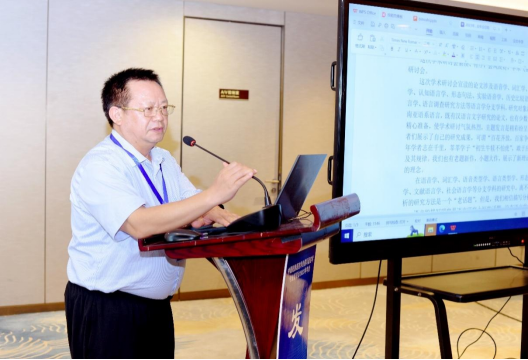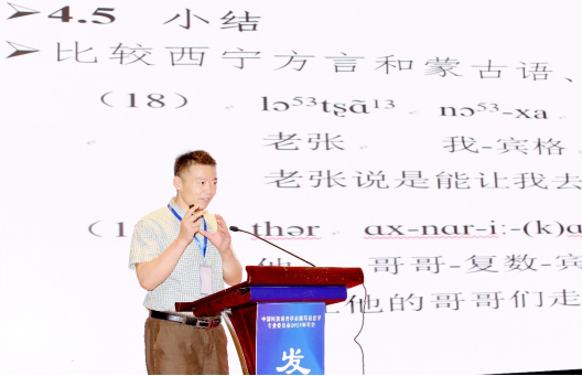 开幕式后,年会进入主旨发言环节。上海师范大学人文学院王双成教授阐述了甘青方言基本论元的配置类型,指出甘青地区的方言都属于“主-宾格”语言,并展开对甘青方言名词、动词形态黏着化的探讨,精细严密地论证了甘青方言形态黏着化的系统性。