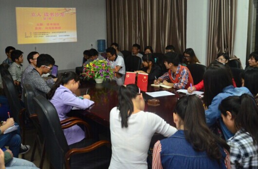 作为一个文学院学子,却很少安静地坐下来去读一本书,这点我是惭愧的。这是个最好的年代,也是个最坏的年代。越来越多人在钢筋水泥、网络信息的丛林里风声鹤唳,草木皆兵。再难闻到那一捧书香,触碰那一纸喷墨,搜寻那一抹背影。今天能够幸运地参与这个读书会,感受到大家思想的碰撞。在这里,我们不再沦落为“低头一族”而是学会了抬起头来表达,天马行空的想法,个人的经历和感受,都可以作为你侃侃而谈的谈资。在这里,我学会了聆听,学会了思考,更学会了表达。