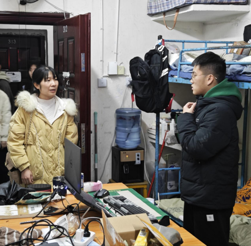 在走访过程中,领导老师们表达了亲切的问候。各位老师不仅了解学生思想动态,解决学生所提出的疑问的同时,与同学们交流生活趣事,拉近彼此之间的距离。在交流过程中,段武城勉励同学们认真备考,及时调整好状态并及时做好新学期规划。针对20级学生,其强调大家已应当树立合理的目标,正视当代就业的严峻形势,努力学习以提升自身竞争力。