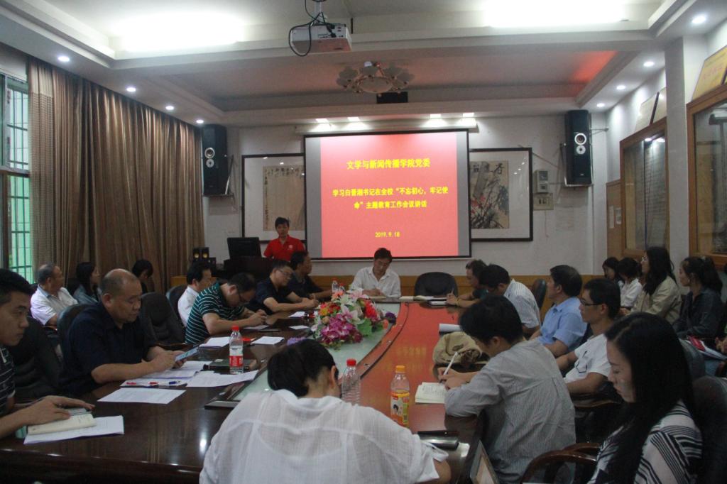 本网讯(通讯员 张玲)为了更好学习贯彻我校党委书记白晋湘在全校“不忘初心、牢记使命”主题教育工作会议上的讲话,mk体育官网于9月18日下午在影视鉴赏室召开了“不忘初心、牢记使命”主题教育工作会。参会成员有我校指导督导组副组长张生强及成员彭业锦、mk体育官网党员教师及三十多位党员学生代表,会议由院长罗惠缙主持。