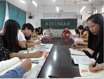 (本网讯) 10月4日下午四点,怀化市沅陵一中特别为实习队组织了一次“班主任工作培训及经验交流”活动,校政教处李主任和现任高一11班班主任的舒老师一起莅临了本次会议,会议旨在学习沅陵一中学生管理要求,熟悉学校的管理制度,让我们实习队在实习期间能够更好的配合学校管理,提高我校语文实习队实习班主任期间工作能力和综合素质,培养一支爱岗敬业班主任队伍。