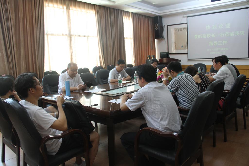黄昕一行先来到砂子坳校区第六教学楼60521 教室听取mk体育官网汉语言文学专业老师邱亮为2016级广告班上的《中国古代文学作品精读》课程,并在之后的指导工作会议中表达听课体会。吴青峰充分肯定了邱亮的教学素质,但仍需要优化课堂教学方式,强化学生创新思维和职业能的培养。
