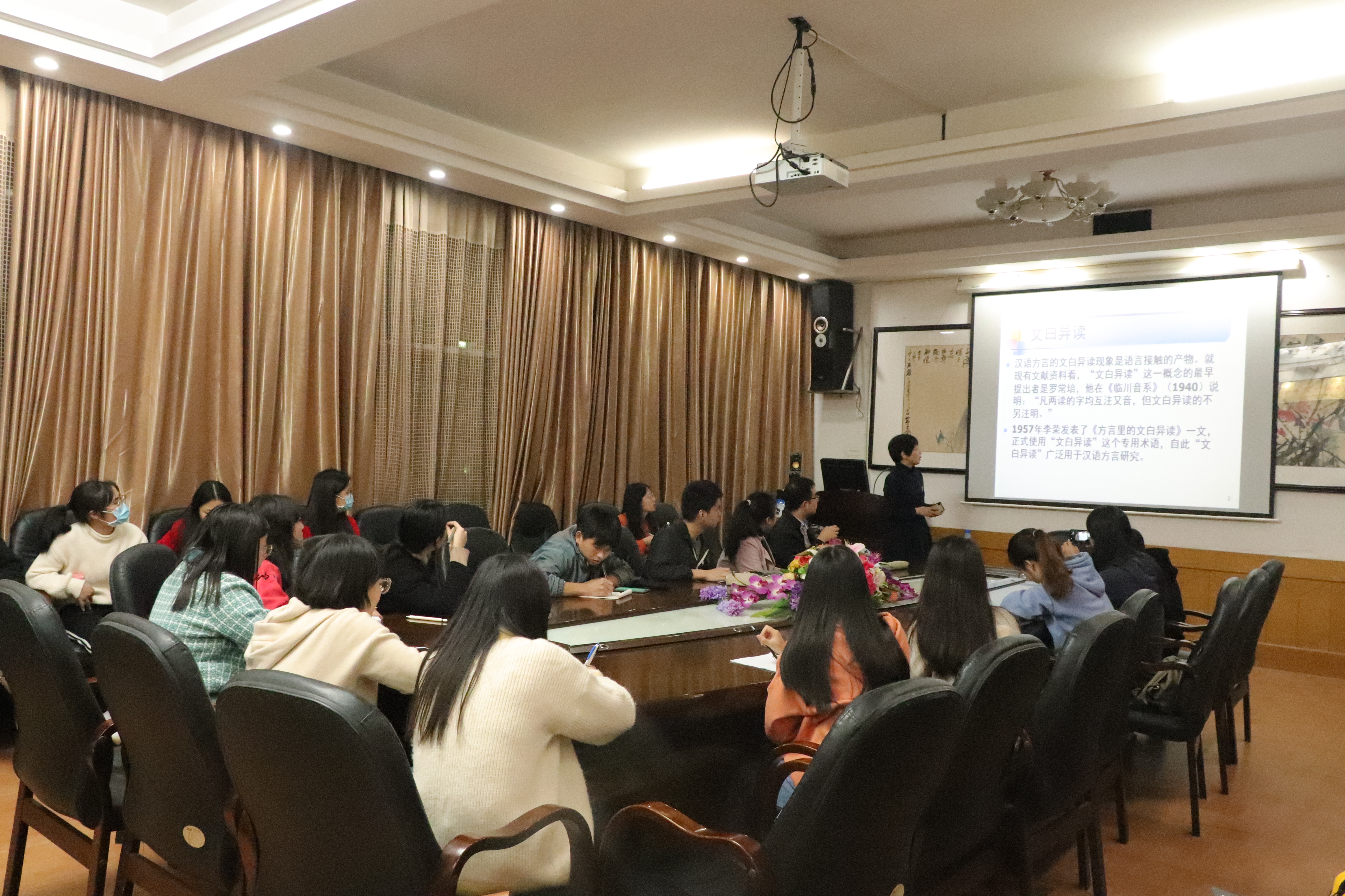 图为 瞿建慧讲授文白异读(通讯员 韩聪慧摄)