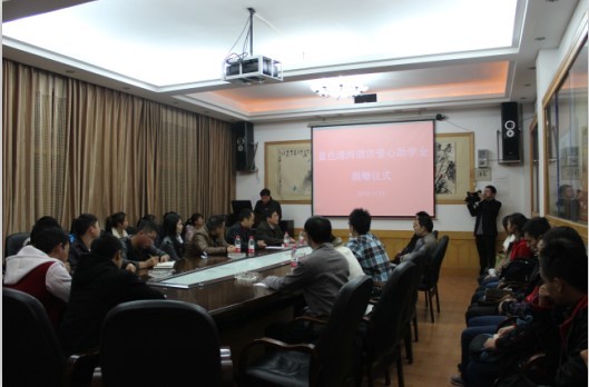 本网讯(记者秦莉平 )“爱心在传递”,11月12日晚,蓝色港湾酒店在砂子坳校区影视鉴赏室举行了爱心助学金捐助仪式,董事长黄明才代表捐赠单位为mk体育官网15位贫困学子发放了助学金共计10500元整。