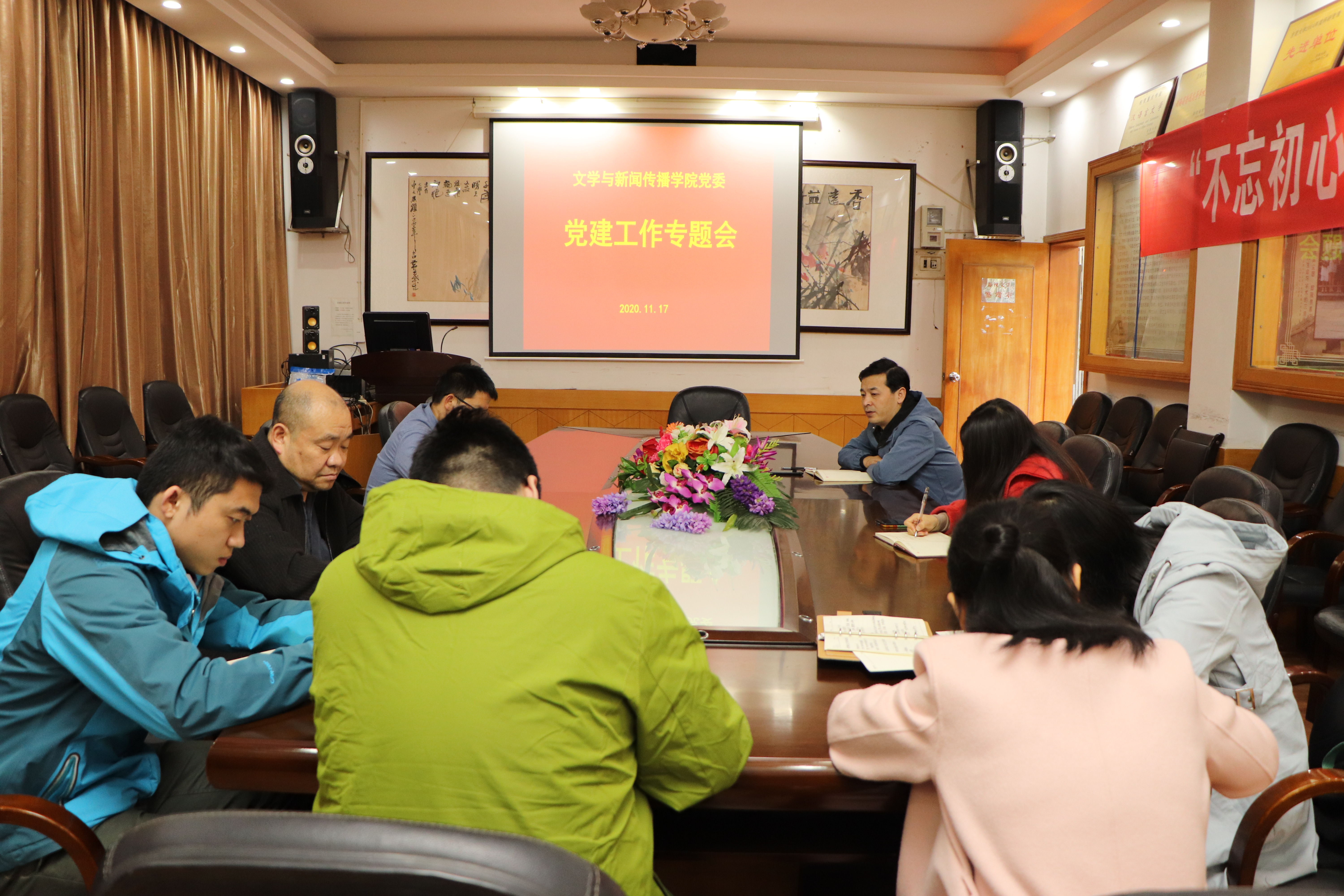 本网讯(通讯员 刘巧华 罗雯婧)为更好地开展党建工作,促进党支部改选,11月17日,mk体育官网在影视鉴赏室召开党建工作专题会议。院党委书记杨龙斌,副书记段武城以及教工党支部书记李端生等教职工党员参加本次会议,该会议重点围绕“党支部改选和党建工作安排”展开工作讨论。