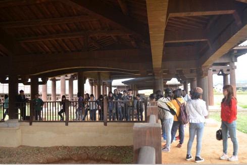 午餐过后,同学们来到了因为出土了3.74万枚秦简而闻名于世的里耶古城考古遗址公园,抚摸着战国到秦汉时期的“古城墙”、走过破格按照郡级标准修筑的“古道”、穿过碧波荡漾的“古护城河”,参观了举国闻名的“中华第一井”。据了解,里耶古城遗址是我国迄今为止发现的唯一一座秦代古城遗址,古城始建于战国晚期,沿用至秦汉时期,现存城址分布明确,范围清楚,古城遗址南北长235米,东西残宽150米,面积约2万平方米,城垣、护城河、作坊、房屋及古井等遗迹保存完好,出土了大批文物,为研究湘西地区战国至秦汉时期考古文化编年及谱系关系提供了重要标尺,填补了湘西地区乃至全国秦汉时期古城,尤其是秦代古城的空白。