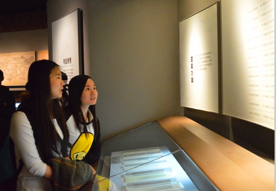 随后,同学们在馆内导游的讲解引领下参观了秦简陈列室、文物库房、简牍资料库、简牍研究中心、“秦简墙”等展厅。