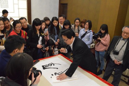 图为 王焕林副院长现场为博物馆题词留念 (旷育强 摄)