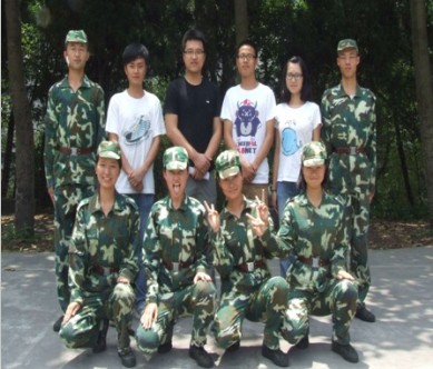 图为 2012级辅导员张程老师、带训教官与学员们合影