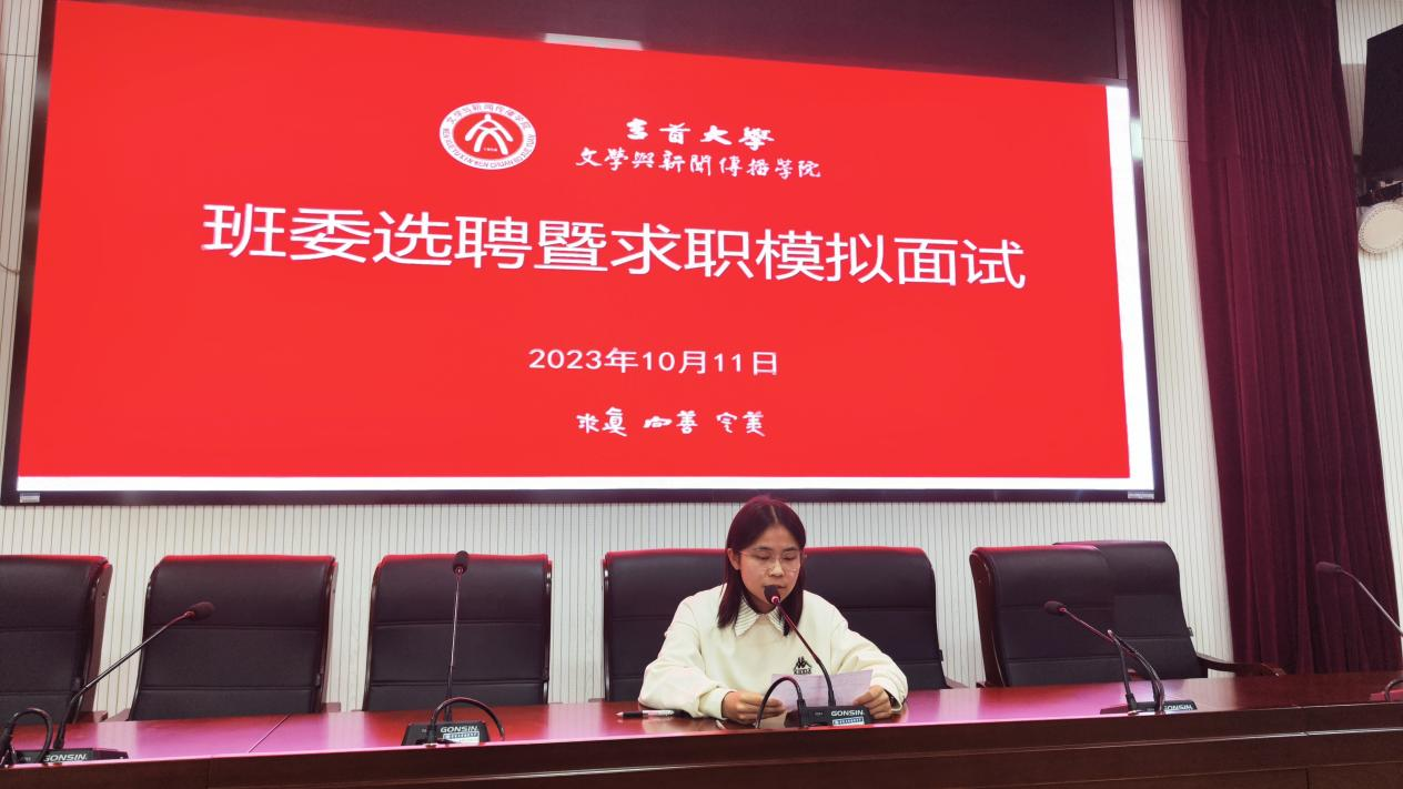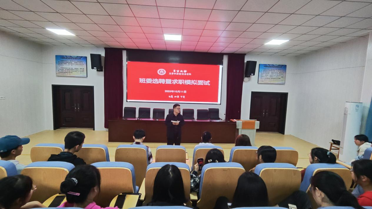 本网讯(通讯员 何佳煦)为进一步加强新生班级组织建设,提早培养同学们在面试中的应试能力,提高面试时的心理素质,使同学们能够在未来面试环节中脱颖而出,10月11日,mk体育官网于砂子坳校区第一教学楼开展了班委选聘暨求职模拟面试活动。本次模拟面试由mk体育官网党委副书记段武城,辅导员吕定红以及学院就业创业部学生干部担任面试官,部分23级新生参加此次活动。