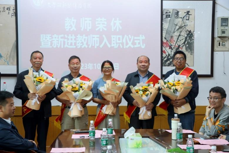 座谈会上,退休教师和新进教师畅谈所言。仪式的最后,彭广林为荣退教师授绶带;学生代表为荣退教师和新入职教师送上鲜花和最诚挚的祝愿;院工会为荣退教师和新入职教师送上精美的礼品。最后,参加仪式的全体师生在从文广场前合影留恋。