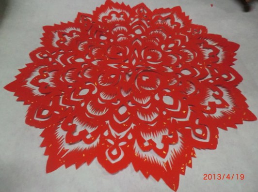 图为 田书记送给民俗学社的剪纸作品——“红满大地”