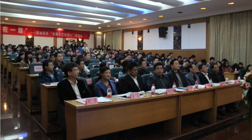 在培训讲座开始之前,主持人依次邀请学校党委副书记白晋湘教授,湘西州委宣传部副部长肖世辉、潇湘晨报副总编辑刘原为会议致辞。白晋湘副书记首先代表校党委书记、校长及全校三万余名师生员工对潇湘晨报副总编辑刘原先生一行的到来表示热烈欢迎。然后简单介绍了学校的办学历史、学科设置、办学成绩等基本状况,并祝愿会议圆满成功。