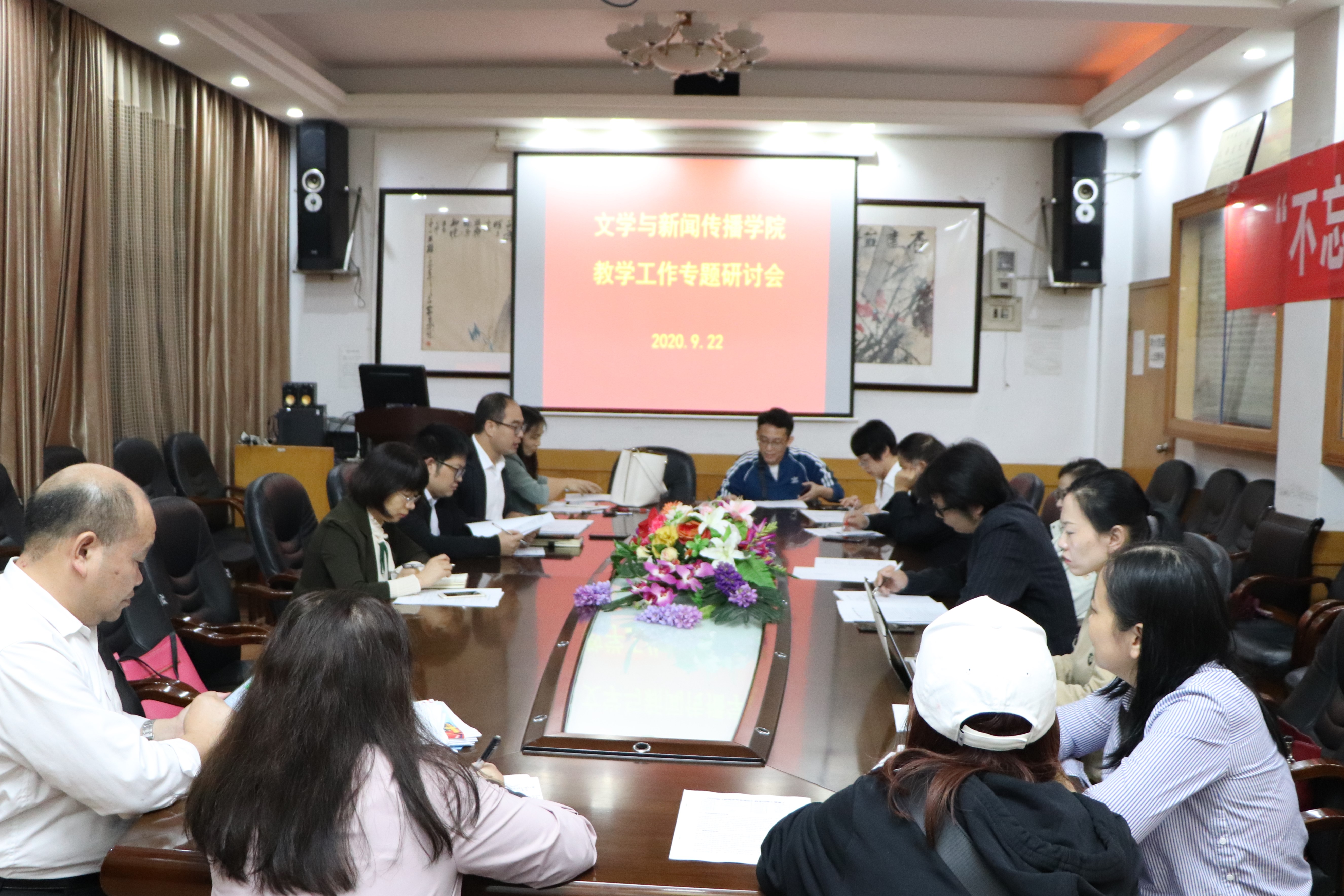 本网讯(通讯员 张意 李冰姿)为夯实学生学科基础,提升学科素养,9月23日晚,mk体育官网在影视鉴赏室召开教学工作专题研讨会。院党委副书记段武城、副院长彭广林、各教研室主任及班导代表参加此次会议。会议由彭广林主持。