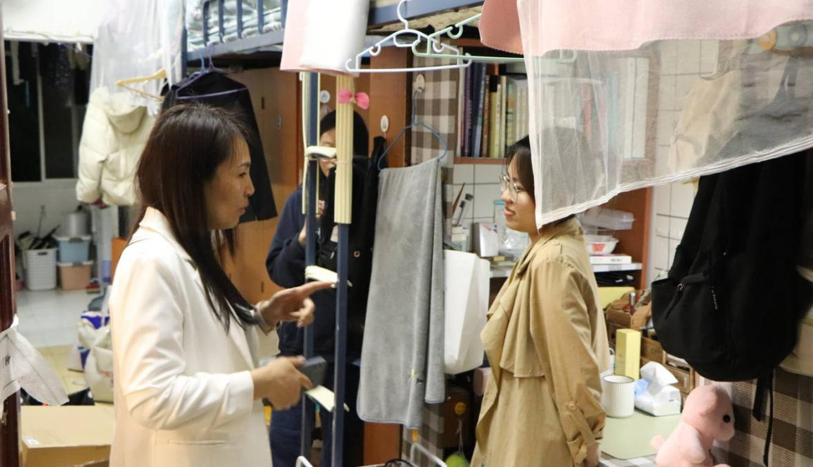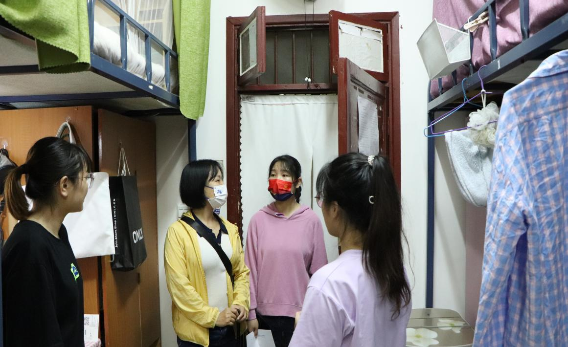 下寝的过程中,辅导员及班导们热切地关心毕业生们近期的生活情况及就业问题,和同学们亲切交流。对于已经找到就业岗位的学生老师们表示祝贺;对于尚未找到工作的学生,吕定红进行了详情询问,分析其原因并提供了针对性的指导,希望她们早日找到自己心仪的工作。
