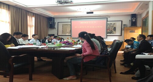 本网讯(通讯员 姚慧 蒋硕华)5月30日,2011级文艺学的同学们迎来了研究生学业生活中的最后一场答辩。本次答辩由湖南师范大学文学院副院长杨合林教授主持,参加此次答辩的委员有:张建永教授、田茂军教授、罗惠缙教授等。本次答辩除了正常的答辩程序外,与往届答辩最大的不同之处在于多了一个远程答辩。