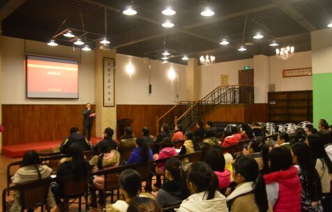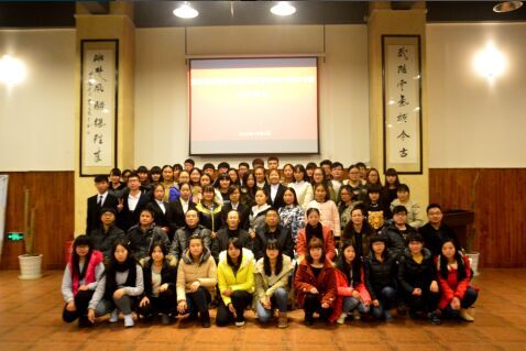 图为胡建文老师发言(孙立青摄) 胡建文发言,他首先作了简单的自我介绍,随后发表了自己对中文班的建设计划。他谈道,其一,校党委宣传部将每年资助一万元作于15级中文班的活动经费、奖励及补助,其二,校开展了品牌栏目活动《问道》提升中文班整体的人文修养,其三,自身将帮助中文班创办班报《美丽中文》等。最后,他用“寻梦”二字表示,自己将与15级中文班在追梦的道路上一路同行。 2015级中文班班级导师陈雪发表讲话,她对校党委宣传部党支部选择了中文班作为联系班级表达了深深地谢意。她表示,中文班将全力以赴,在胡建文老师的带领下努力寻梦。