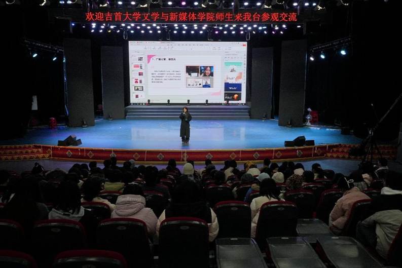 本网讯(通讯员 杨甜甜 骆晨露)12月23日,文学与新媒体学院2023级新闻班全体同学,在播音与主持任课教师李兰的带领下,前往湘西州广播电视台开展专业课程见习活动。