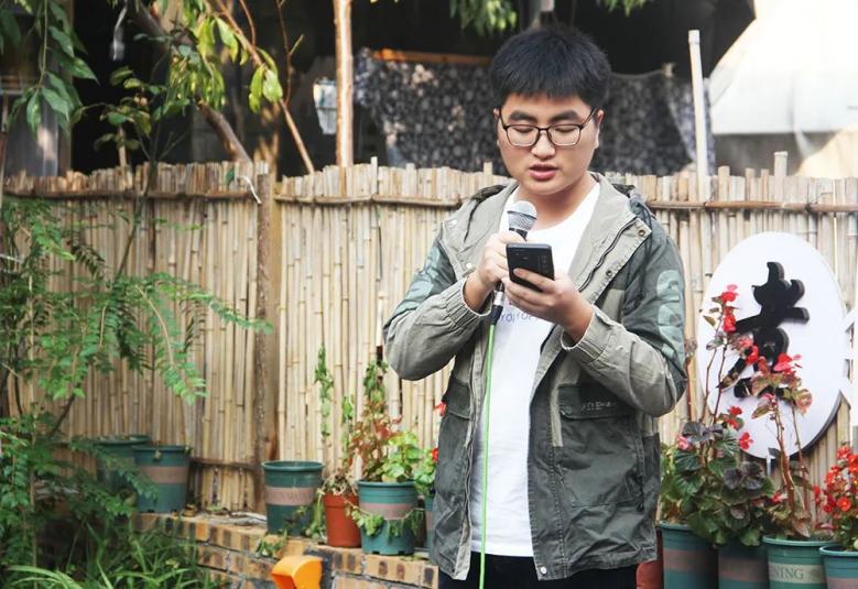 图为作家梁厚能发言