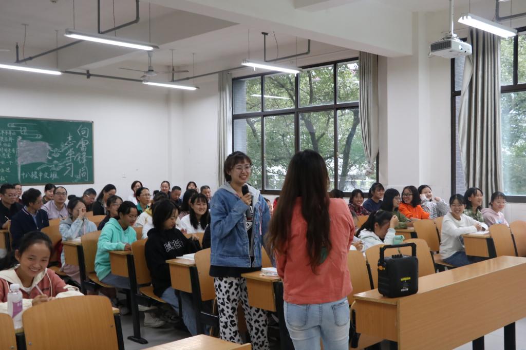 在课堂互动环节,面对“什么是人?”“文学如何表现人性?”等文学史上的灵魂拷问,她和同学们一起通过对周作人《人的文学》里相关内容的交流和讨论,提出了中国现代文学与古代文学在对人性的思考上有很大差异,其中中国现代文学更多的是宣扬人道主义及表达个性理想。