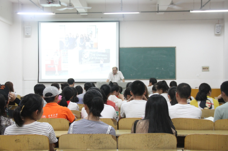 会上,李端生首先用短暂的发言引出了新闻学专业介绍短片《新闻,让你非同凡响》,让新生们了解新闻学专业概况、办学特色、教学条件。