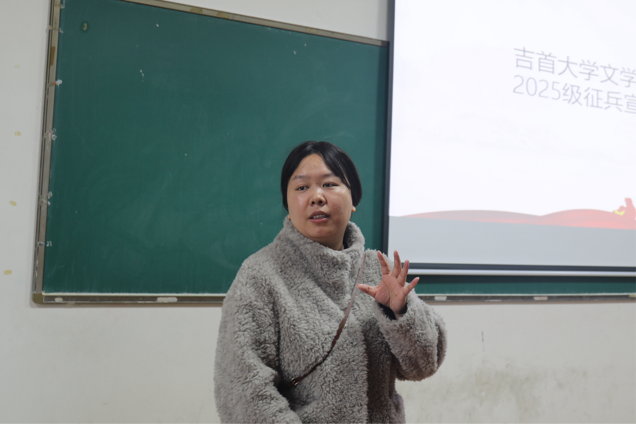 宣讲会上,丁玉兰强调成年男子进行兵役登记是公民的职责,并鼓励同学们将个人理想融入国家发展,积极参军入伍投身国防事业,用青春热血守护山河安宁。