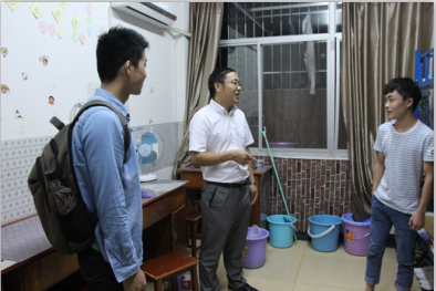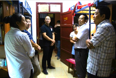 本网讯(通讯员 朱鑫玉 田元伟)9月3日晚,在我校开学之际,mk体育官网党委书记田茂军、党委副书记向军、副院长彭广林及各级辅导员来到砂子坳校区11栋宿舍楼看望mk体育官网返校学生。