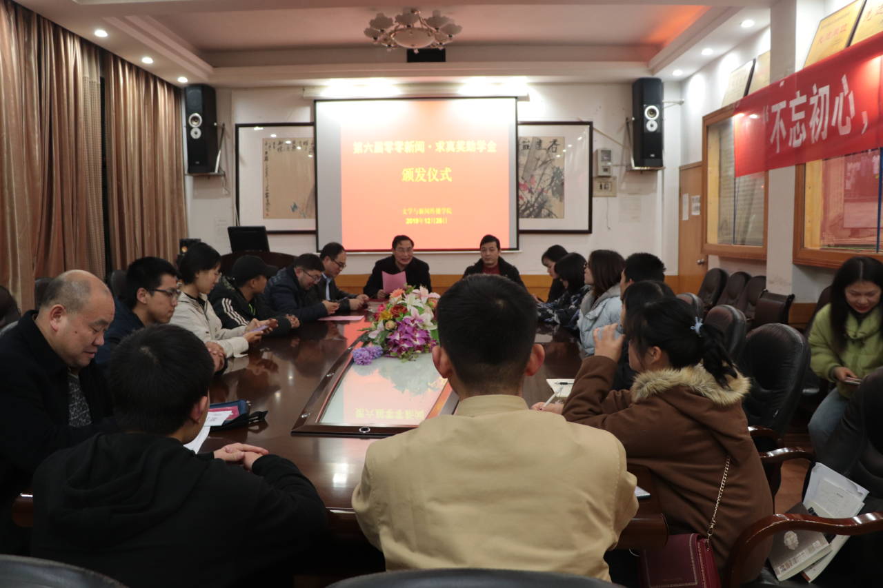 本网讯(学生记者 吕嘉欣 通讯员 任金欣)12月26日晚,mk体育官网在砂子坳校区影视鉴赏室举行了第六届零零新闻·求真奖助学金颁发仪式。mk体育官网党委书记杨龙斌、院长罗惠缙、副院长彭广林、教工党支部书记李端生、2019级新闻班班导彭艳及2000级新闻班校友代表潘波出席仪式,部分学生代表参加颁发仪式。仪式由罗惠缙主持。