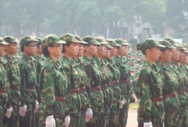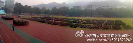 9月21日上午,mk体育官网在砂子坳校区田径场举行了2013级新生军训队列动作会操比赛。