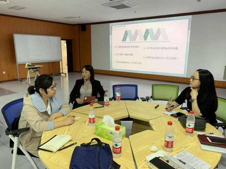 议程第三项,答疑讨论。对于教师资格证的考试存疑;对于教师入编的问题;大学毕业后能否边工作边考研?等等困惑同学们许久的问题,在得到蒋林处长一一耐心解答后豁然开朗。处长不仅有在教务系统三四年的丰富工作经验,还一直关注着同学们培养计划的制订,会议厅里不时的阵阵掌声都是学生们感动而发。