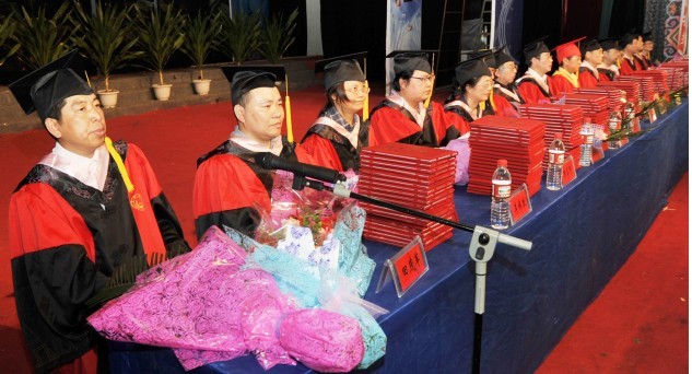 随后,领导及老师们为mk体育官网2010届毕业生举行了学位授予仪式。在庄重的音乐声中,337名文学学士穿着庄重的学士服、踏着激动的步伐、带着自信的微笑依次走向了讲台,接受导师们的学位授予,并和领导、老师们合影留念。