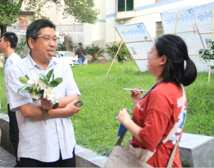 我们采访了院长罗惠缙和副院长王焕林,在接受采访时,罗惠缙说“今晚参加晚会感触很多,不过欢乐多余忧伤,大家表现都很棒,希望同学们在以后的生活中越走越顺畅,越活越快乐!”面对毕业生,他有许多不舍,但更多的是祝福。