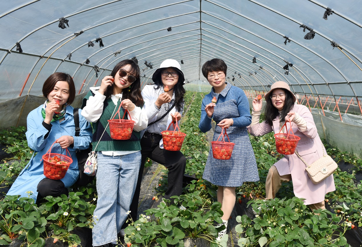 活动伊始,段武城代表学院向女教职工们表达了节日的祝福。随后,为让女教职工亲近自然、放松心情,全体女教职工深入草莓基地采摘草莓。据悉,女教职工们会在后期收到学院将纪念照做成的小摆台。