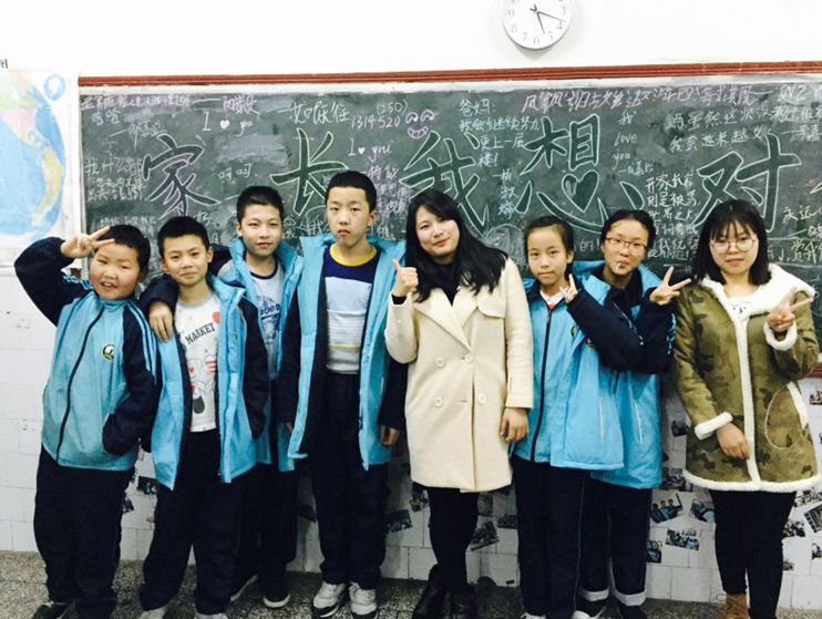 图为 实习老师与学生合影
