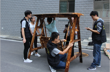志愿者们到达慈爱园的时候,副园长易瑜已早在门口等候。随后,副园长与他们一起亲手搭建了一个秋千。到孩子们下课的时候,老师带着孩子们在另一边等待,让他们猜测在这个特殊的日子里将会收到什么样的惊喜,他们大喊“教官”“教官”。声声呼唤之后,曹紫阳放下手中的活去跟他们打招呼。