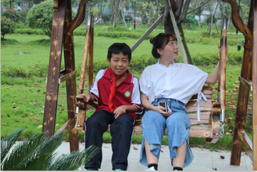 图文 志愿者和孩子荡秋千(陈德玉摄) |