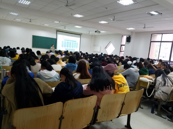 粟幸福进行学籍讲座宣讲。她从学籍管理、学务管理、考试管理、实践教学以及教务管理相关职能部门五个方面对学生未来的学习进行指导。其中,她着重强调了取得毕业证和学位证的要求。并通过例举无法取得学位证的做法,希望与会学生引以为戒,能够顺利取得“双证”毕业。