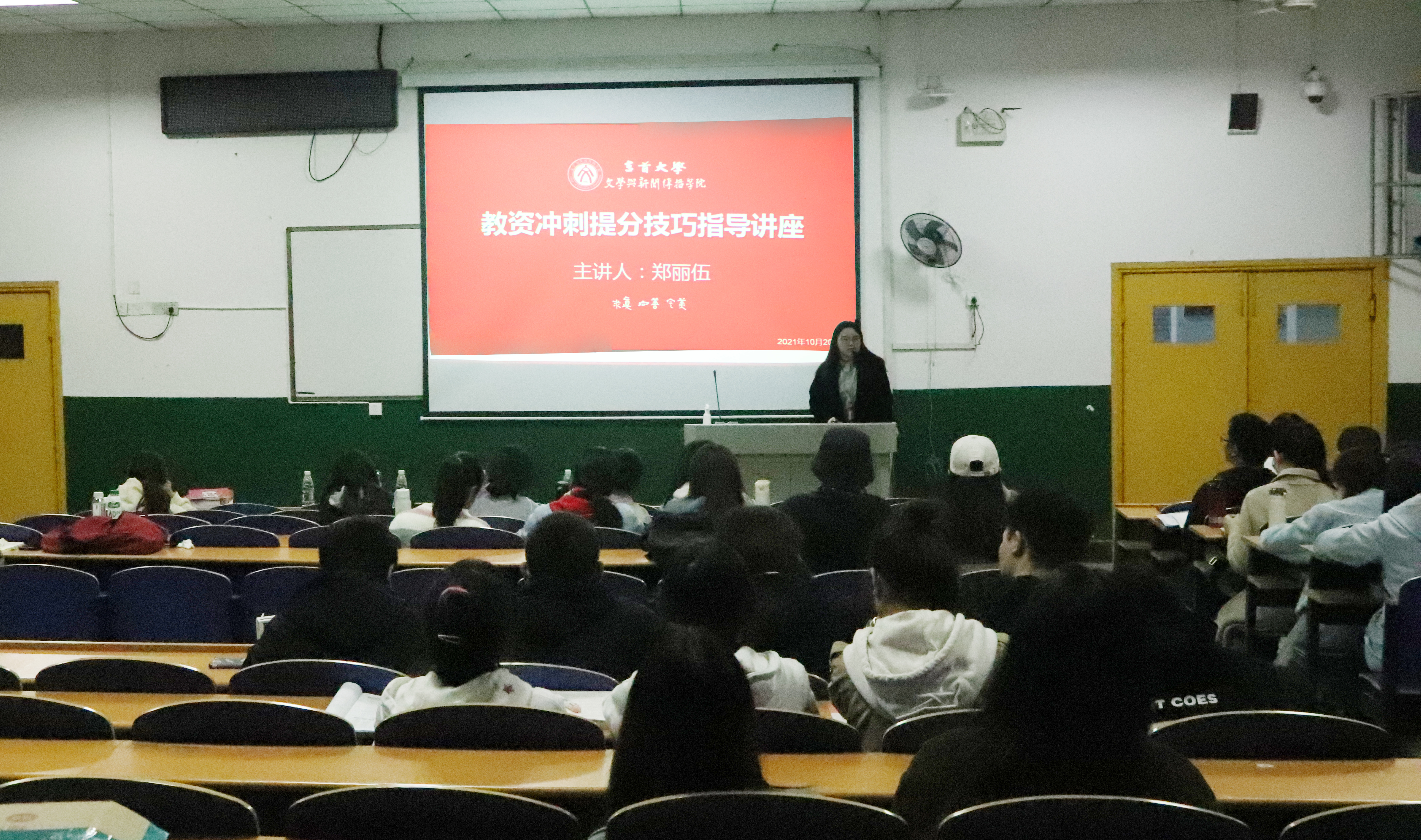本网讯(通讯员 李慧凝 徐露露 胡玉)为帮助mk体育官网2019级本科生更好应对教师资格证考试,10月20日晚7点,mk体育官网于砂子坳校区第一教学楼1107教室开展教资冲刺提分技巧指导讲座。本次讲座由湖南省中公教育的郑丽伍担任主讲人,2019级中师部分学生参加。